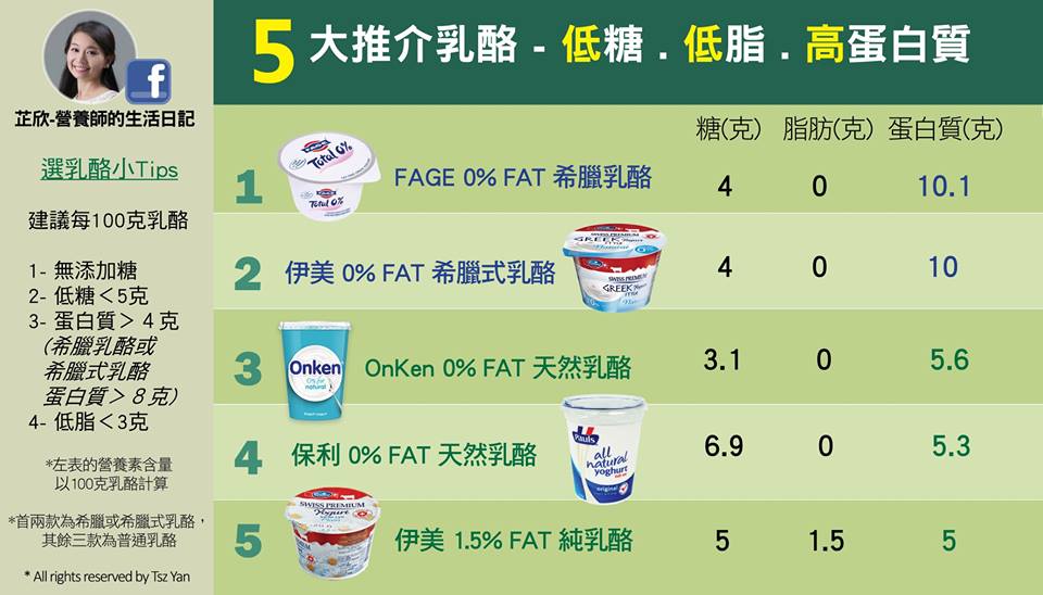 脂肪:100克乳酪中脂肪低於3克已經不錯,市面上好幾款都是0%脂肪的乳酪,選了幾款出來比大家。有少許脂肪乳酪口感也會較好,如果想有少許脂肪,選擇少於3克脂肪的也可以。