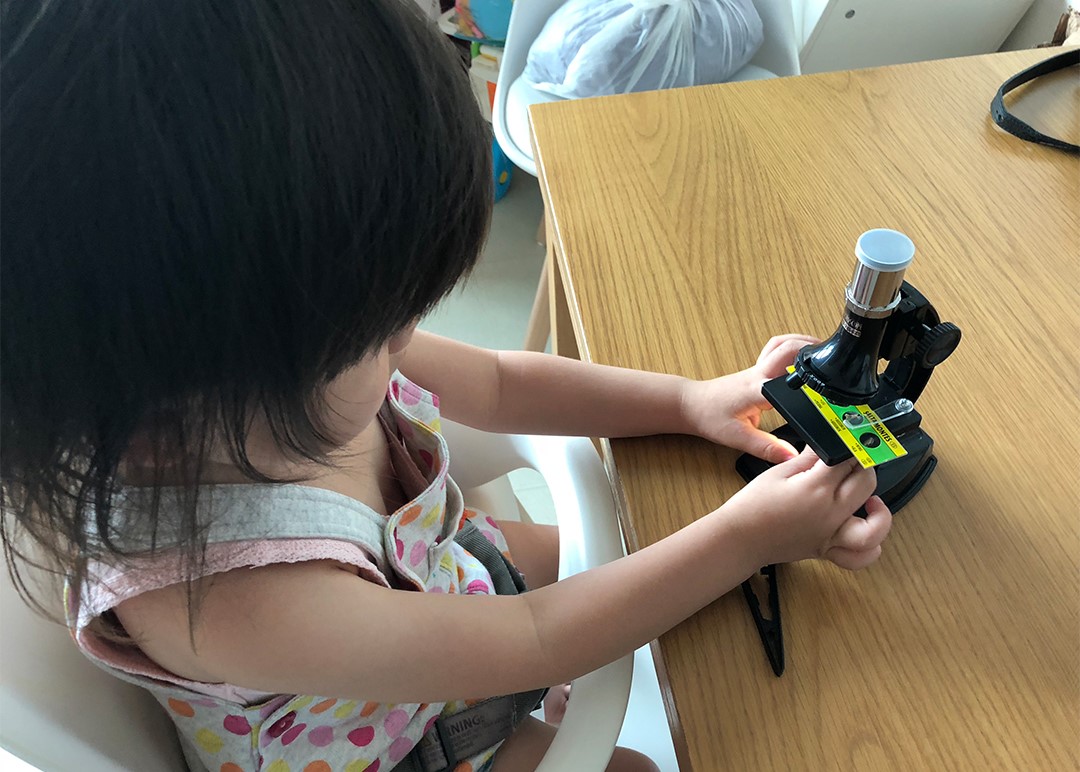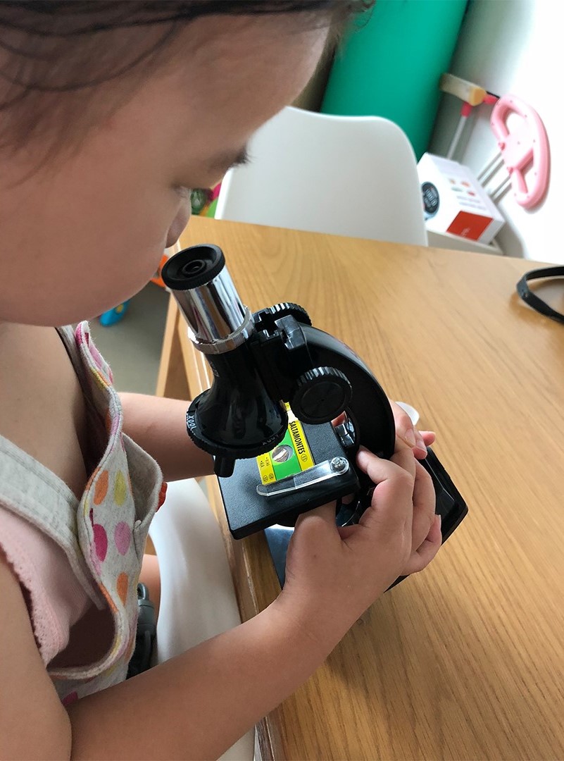 她對這個顯微鏡下的世界感到非常有興趣,現在每天也努力找找一些新東西放進顯微鏡內看看,如泥土、草、頭髮、奶、水果等等。 看見她這麼自發性的學習,真的覺得這個$159的玩具絕對值得購回家!!