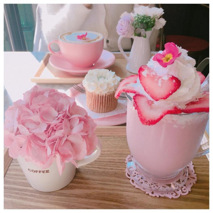 整家店都佈滿粉紅色的美~鮮花加粉紅,小編的少女心都爆發了!