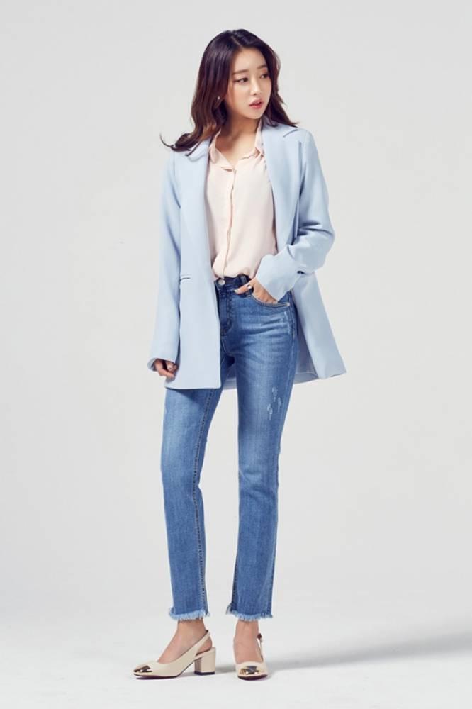 誰說知性美就是要黑色套裝?試穿上粉藍色的西裝外套再襯搭高跟鞋,立刻顯現出女性的成熟魅力。大家看到這身裝扮的女生,也會覺得比較易親近,完全沒有老成感。