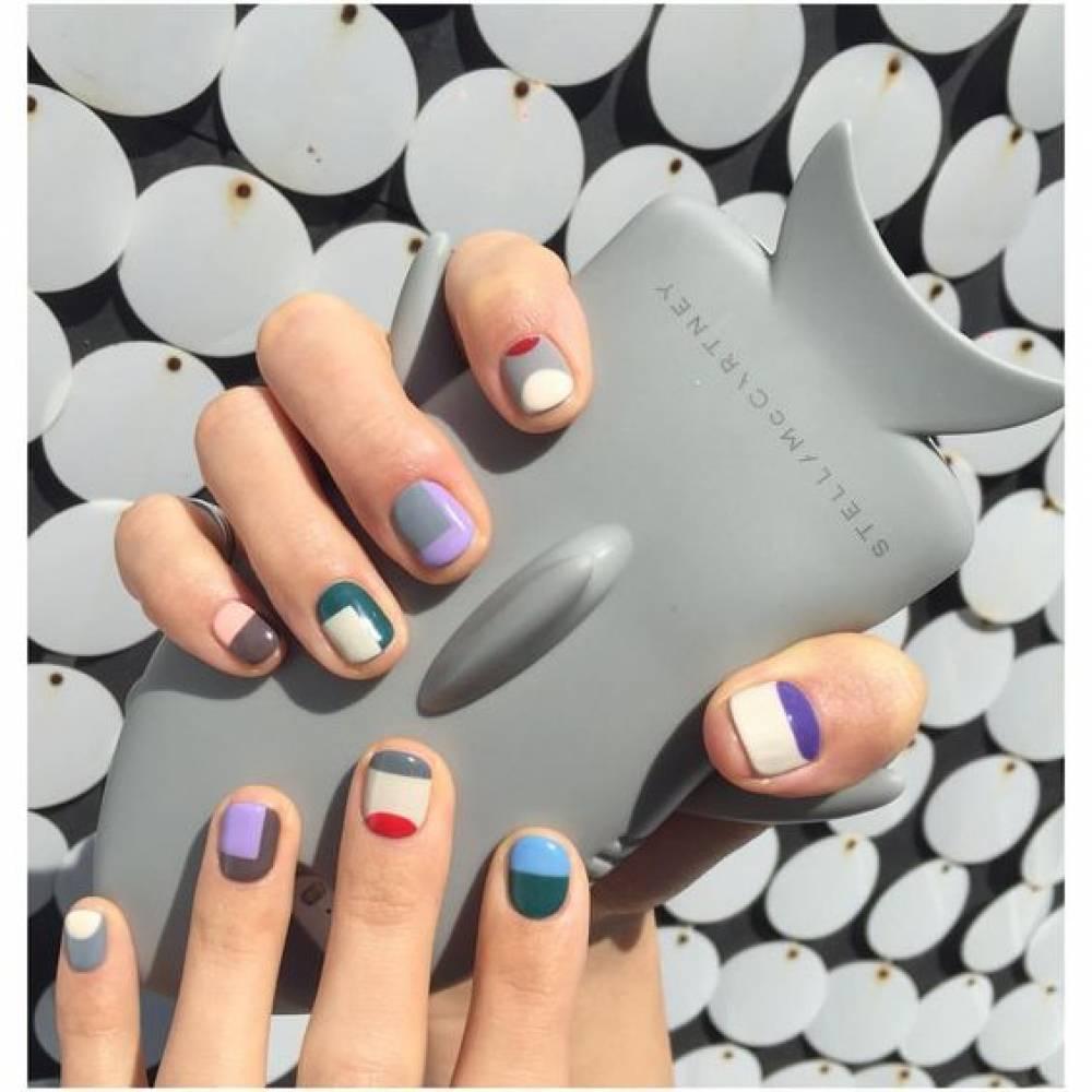 弧形+正方形+長方形,幾款重疊在一起也有一點新意思啊~大家好好善用不同形狀的貼紙,先構圖出理想的圖紋,這樣拼一下就能創造屬於你喜歡的形狀啦!