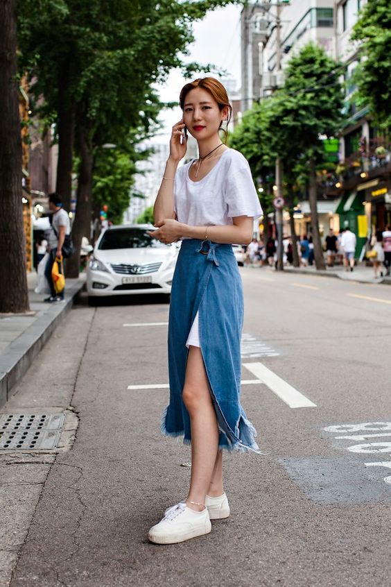 不規則的半身裙子,在大腿的位置開衩是很性感的哦~