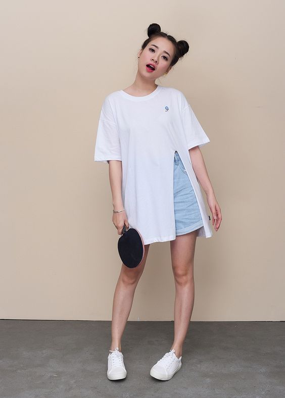 長T給感覺很簡單,而且穿不好還會像孕婦裝,不過開衩設計就可以解決以上問題了~