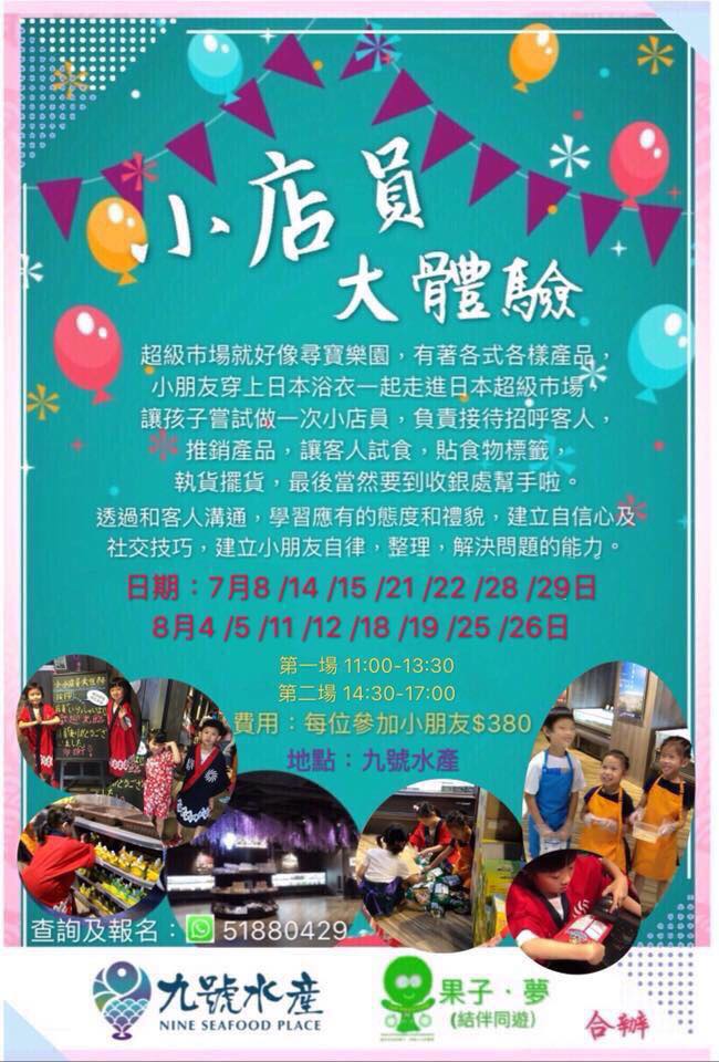 以下是九號水產職業體驗資料,3歲或以上的小朋友可以參加~