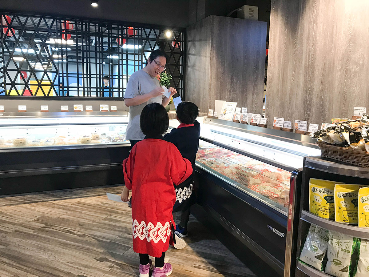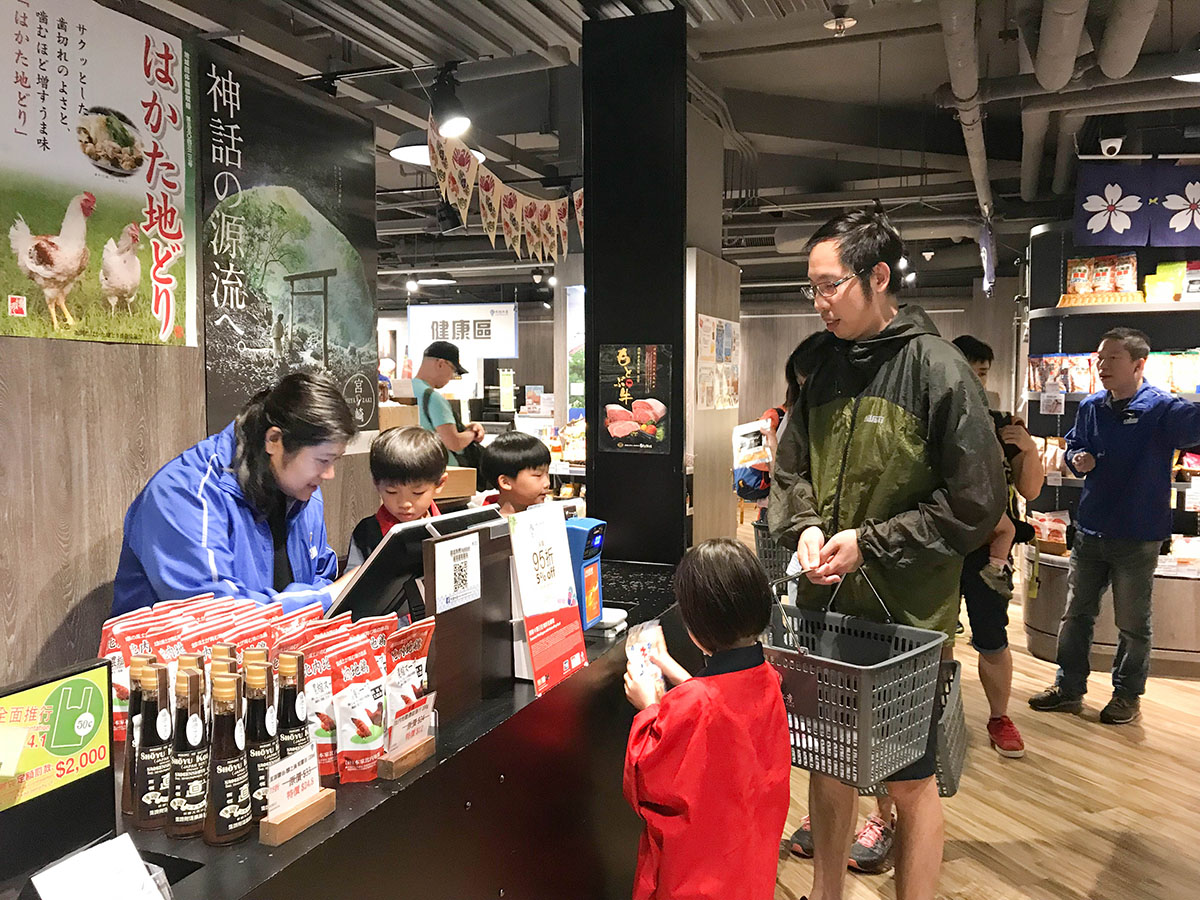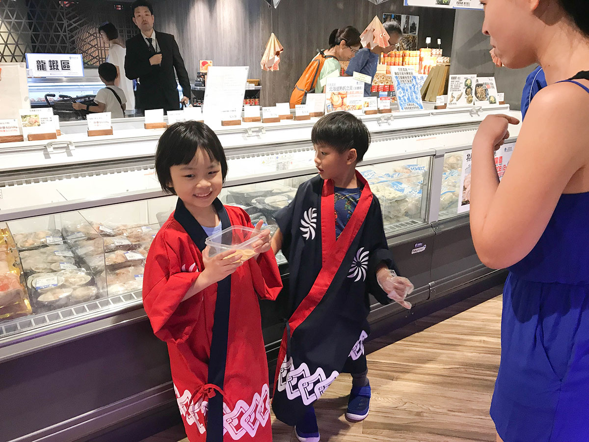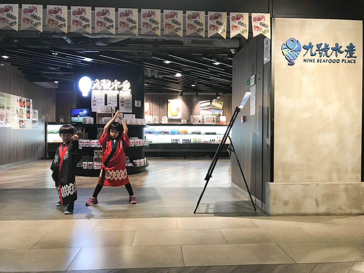 在九號水產內的日本精品食材超市內當小店員,九號水產這家日本精品食材超市地方很寬敞、乾淨明亮,有別於傳統超市貨架密密麻麻~ 所以像楊小寶年幼的小店員來這裡上班也很安全適合。