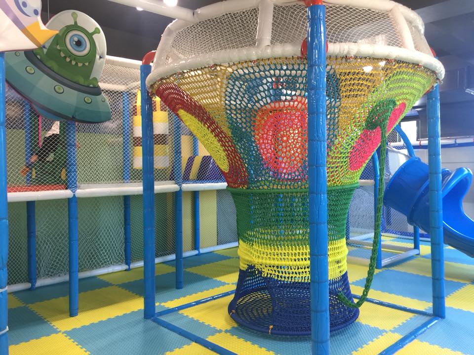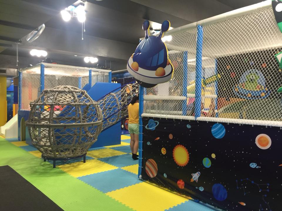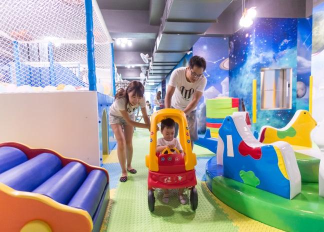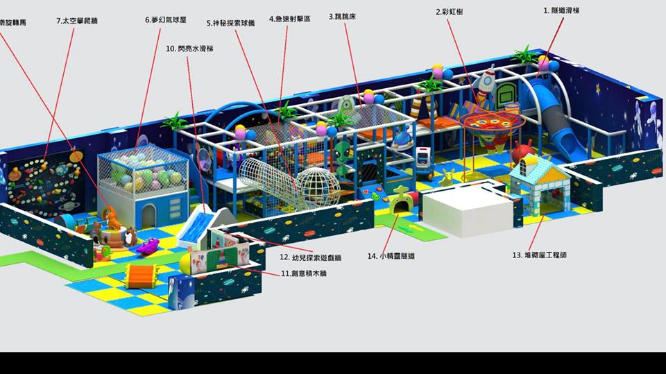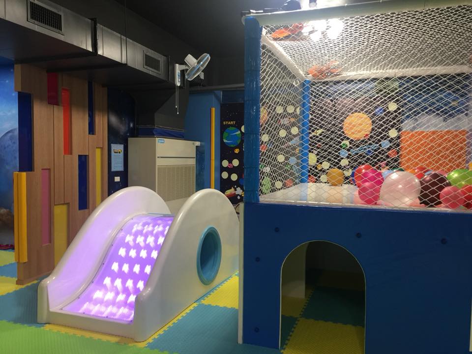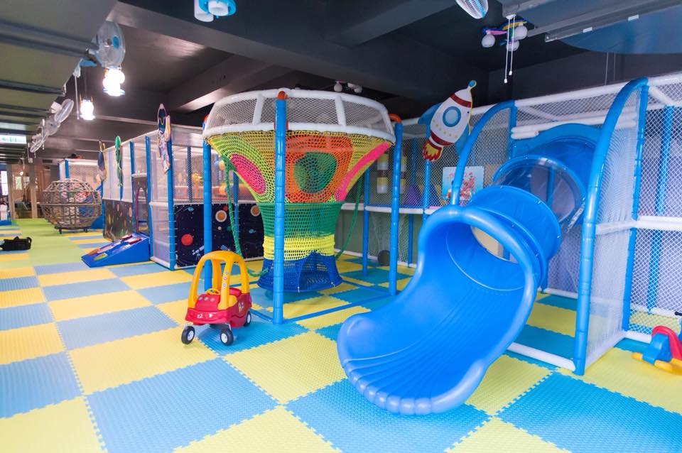 二樓是遊樂園,滑梯、跳跳床、積木、攀爬牆、波波池等等,「放電」應有的設置,通通都有,一定會有一樣是可以滿足到小孩的。