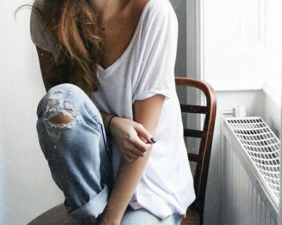 先從最簡單的就是白T加牛仔褲加球鞋!不過SIS要注意,圖中的牛仔褲是寬腳的牛仔褲,把褲腳捲起才可以有慵懶的感覺哦!