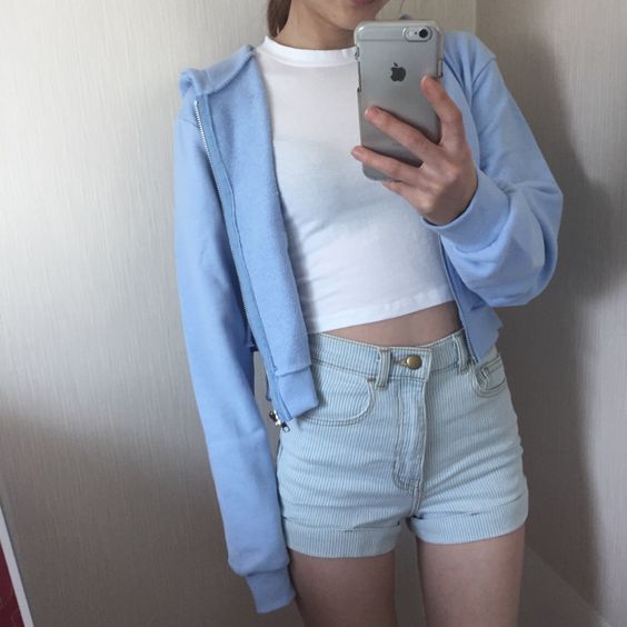 再來就是短牛仔褲啦!相信每個女生都一定有吧~而且時尚一點可以加上一件針織的薄外套!