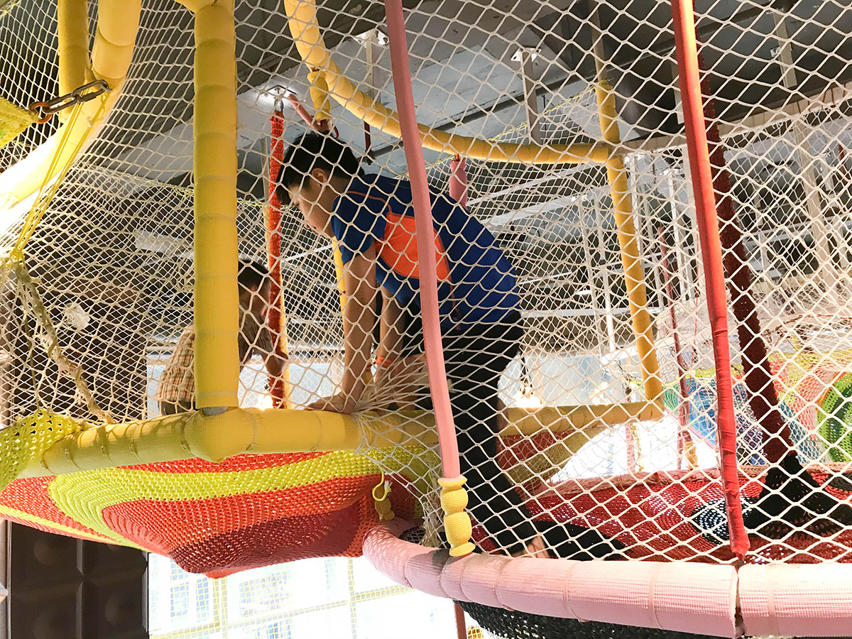 架空繩網是小孩專屬,大人不可以爬上去啊。