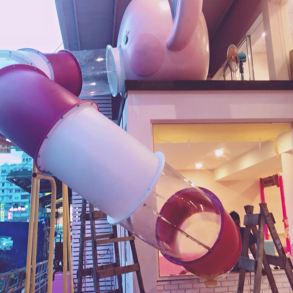 而最最最吸引小編的,莫過於這間餐廳的外觀,尤其是這個可以「溜」出餐廳外面的「大象溜滑梯」了!