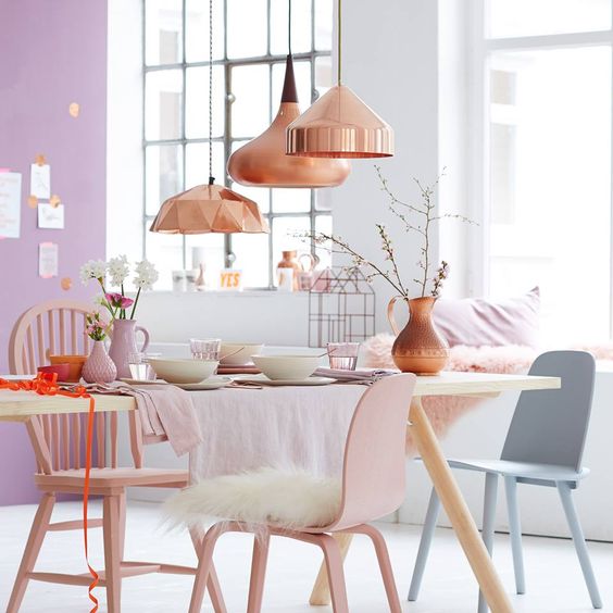 白色感覺很自由和純潔喔,但有時候過份的純白就會有點小乏味哦~淺淺的灰調粉紅色系,或是淡玫瑰色搭配上復古的金銅色,會給人一種溫暖的氛圍,運用在居家環境裝飾中,能夠襯托出個人的品味與優雅的氣質喔。