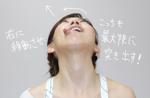站直,然後仰望著天花板,把舌頭抬起,脖子和下巴的線條盡可能連成一線。