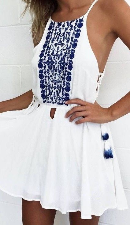 感覺白色裙子配上藍色的繡花很仙氣啊!