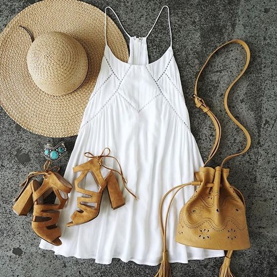 最近很流行的圓隋形袋子和駝色都很合適穿白裙子!