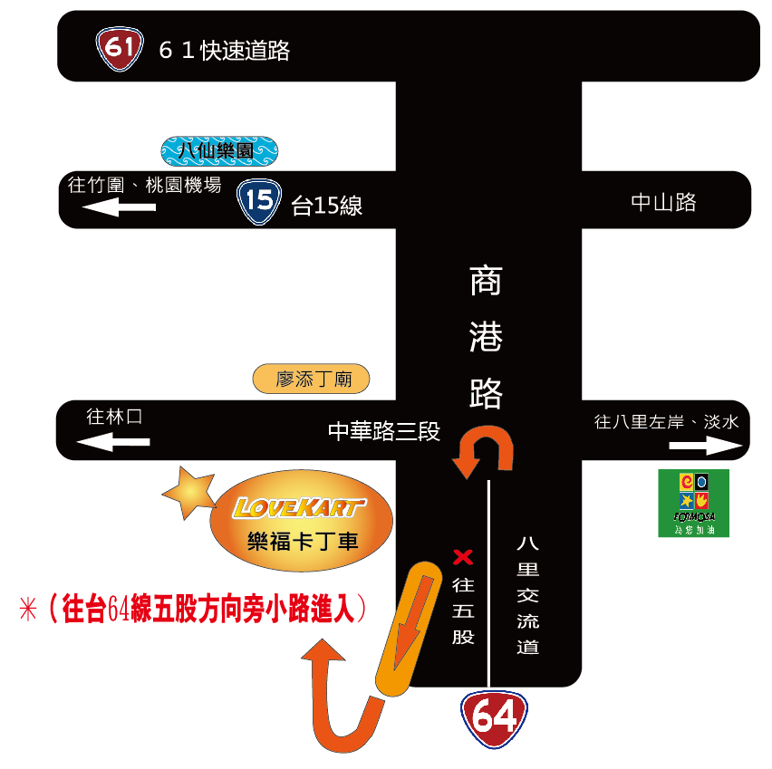 位於台64線八里交流道橋下、正下方的[八里樂福卡丁車],是最鄰近台北及新北市,同時亦是「雙北地區唯一」,可提供安全競速的小型賽車場地。場地大概有1500坪大,其中賽道400M,擁有20多輛卡丁車,非常適合一大班人揪團飆速哦~