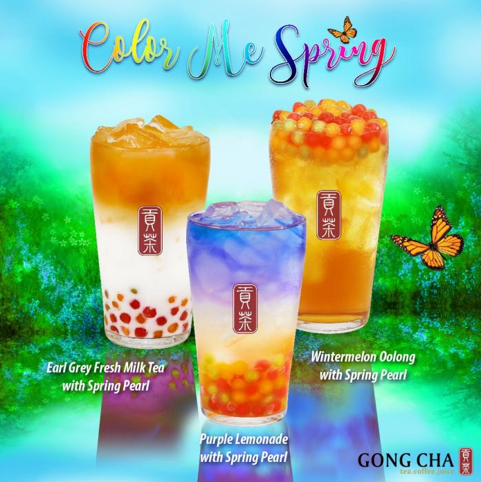 美國也有貢茶對於大家來說可能不是新鮮事,但推出既夢幻又神秘的飲品,這事卻在外國興起熱潮來~Color Me Spring推出了Earl Grey Fresh Milk Tea with Spring Peral,Wintermelon Oolong with Spring Pearl,Purple Lemonade with Spring Pearl