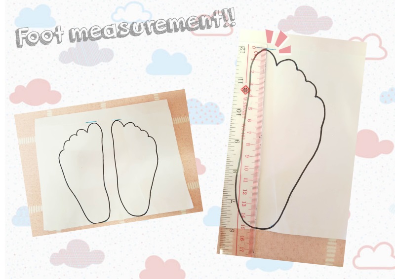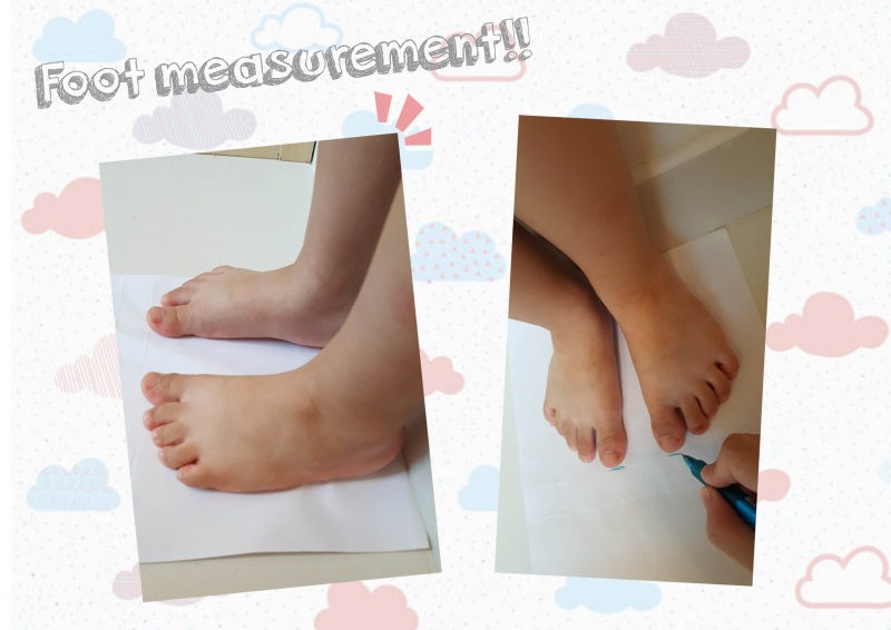 只需準備一張白紙和筆,把小朋友的腳踭及腳指頭定位在白紙上,連成直線/畫上小腳印