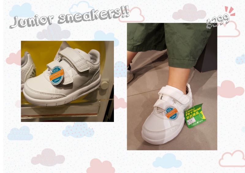 經過一番試穿後,包包話最舒服是這一對,最後米高媽媽為包包買了這對ADIDAS JUNIOR SNEAKER