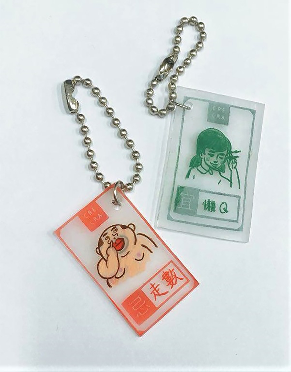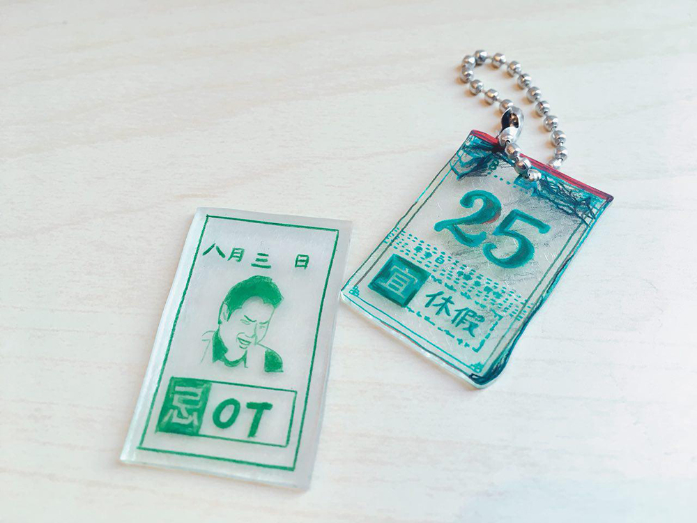 將傳統日曆元素「宜」、「忌」加入熱縮膠片內,變成獨一無二的鎖匙扣。