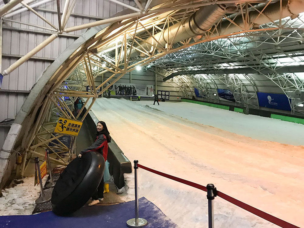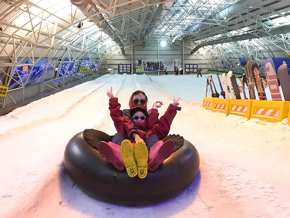 人造雪滑雪場,這裡擁有全台第一座總面積達750坪的超大滑雪場,長60公尺的滑雪道。