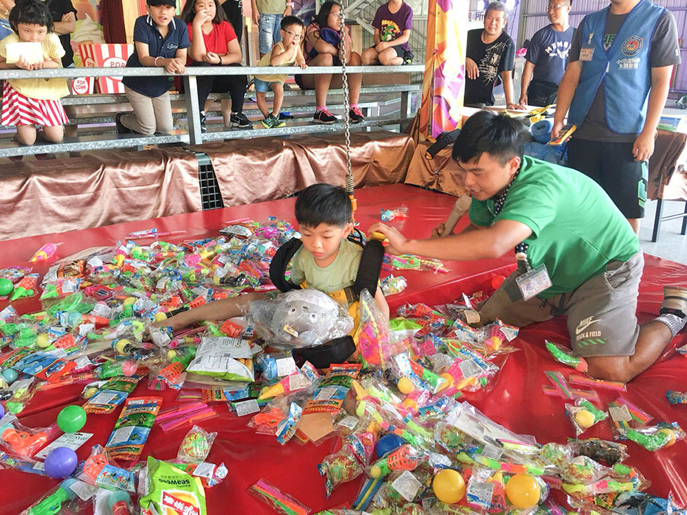 真人上陣的夾娃娃機,非常爆笑有趣,小朋友可以一嘗做飛天狗的滋味!!