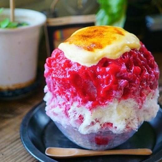 說是被燒過的冰,真的沒騙大家~刨冰上的一層Crème Brûlée,被火槍燒過後都變得微焦,一冷一熱的口感(口水口水),你一定會愛上的。
