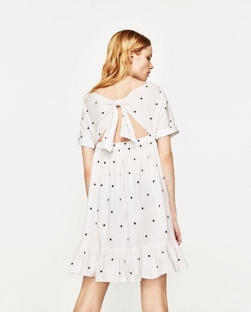 5. 白色的波點短袖連衣裙同樣地走清爽的簡約風,別以為這設計都過於平凡,因為重點都是在背後啊~ 按此查看
