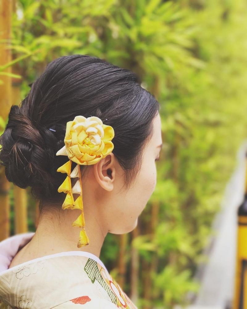 穿和服是一定要加上盤髮的~蓬頭散髮就不美了!
