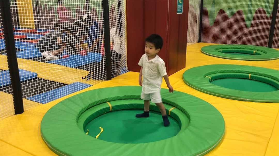 還有兩個彈床區啊,一個是專給100公分以下的幼兒彈床區。