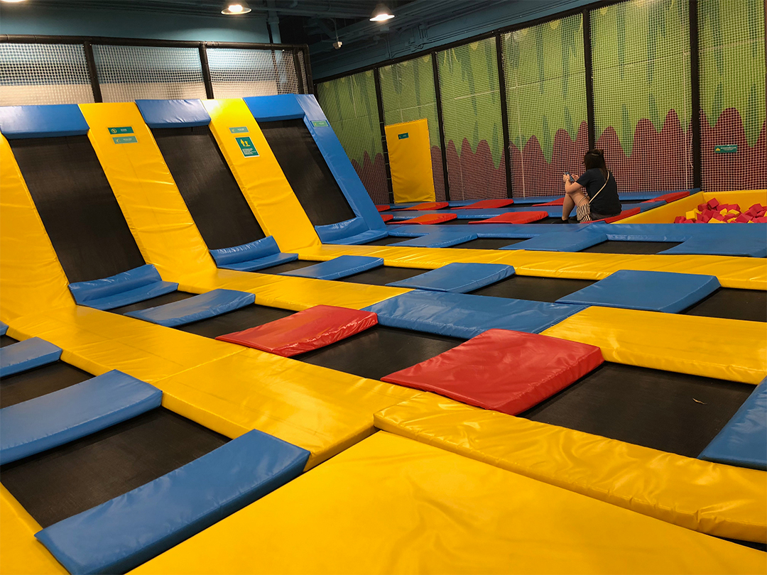 另一邊則是大孩子可以玩的彈床,面積超大!