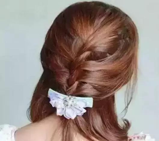 7. 用橡皮筋綁好之後再夾個美美的髮飾就好啦!