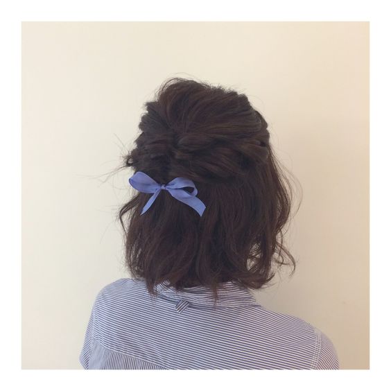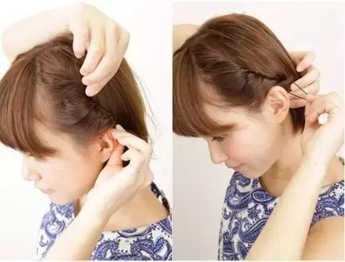 2. 一直扭轉到耳後的位置就可以停止了,用小髮夾固定發尾,將一些細微的毛髮也塞入髮辮中,這樣就完成啦,一款甜美型的短髮扎法編髮就完成了。