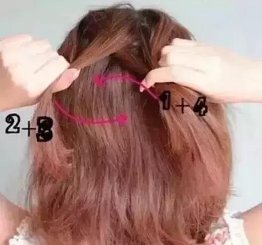 4. 再在發束1旁邊抽出一小束頭髮(發束4),發束2、3和發束1、4分別合為同一束。