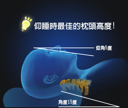 最佳的睡眠是當你躺下時,下巴應該保持水平狀態,這是正確的枕頭高度。如果下巴最低處朝天,就表示枕頭太低了;如果下巴是往下壓的,就代表枕頭太高。