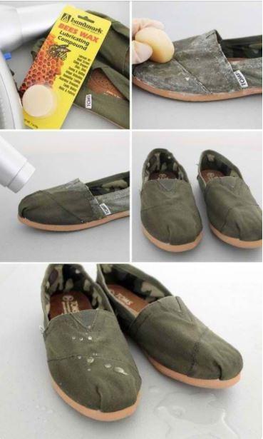 在鞋子與腳跟接觸最多的部分,用蠟燭或肥皂抹上一層薄薄的蠟,皮革表面瞬間就會變得光滑不再磨腳。而且還可以把整雙鞋抹上蠟讓吹風機吹乾後,更可以變成防水鞋呢~