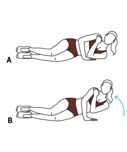 -右手平放在地上,用右手的力撐起上半身(撐至右手手臂垂直)