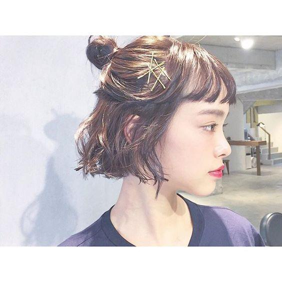 短曲髮的女生綁上丸子頭都是滿滿的可愛感,