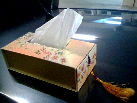 在月餅盒上面地方,剪出一個圓形,再把紙巾放入內,就可以成為美美的紙巾盒啦!