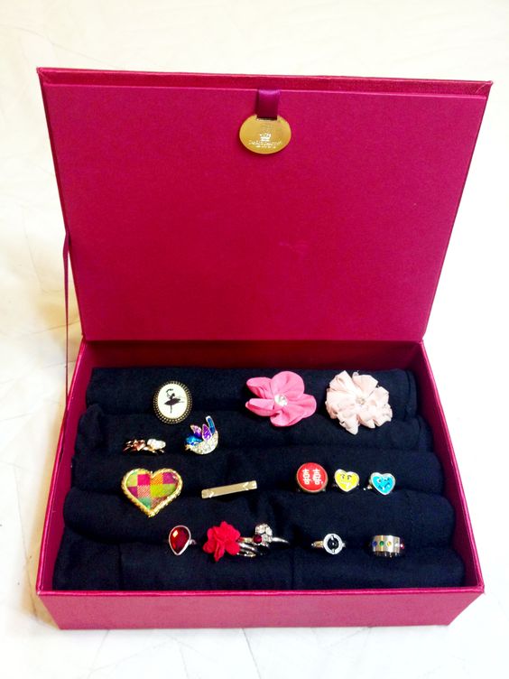 去淘寶或文具店買一大塊的海綿,剪成與月餅盒一樣的形狀,在海綿中間的位置剪出一行一行的,千萬不要剪太深喔~不然手飾放進去後,就會很難拿出來喔!