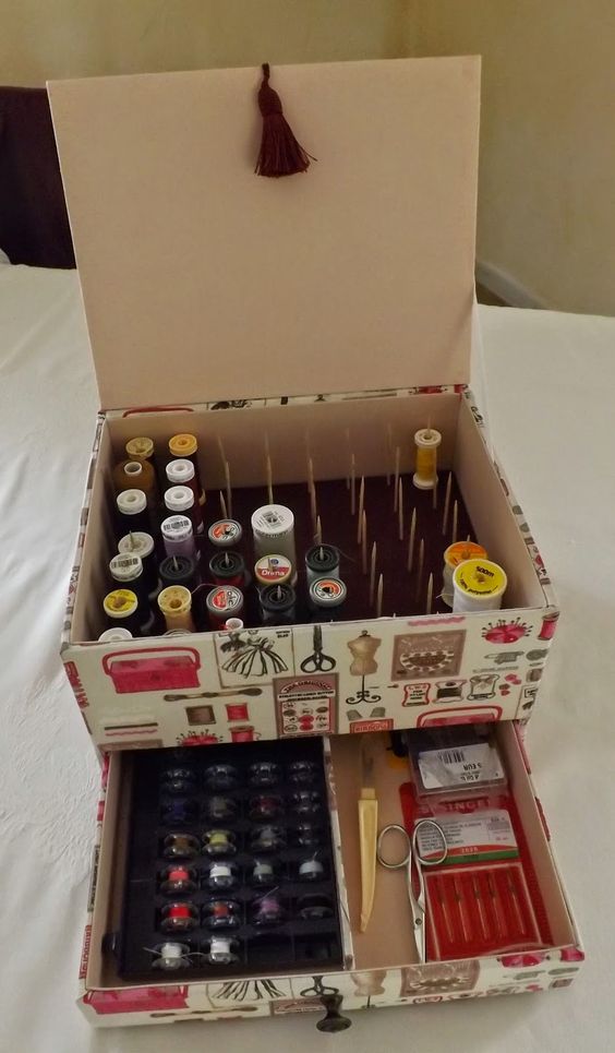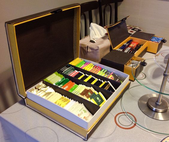 這個和上面的手飾盒的原理差不多,都是收納的用途!用比較硬的卡紙製成間隔,東西就可以整齊的擺放啦!