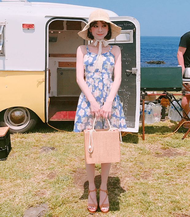 花系的短裙能夠穿出甜美可人的感覺,配上甜美的笑容,旁邊的大叔都被你融化掉了~