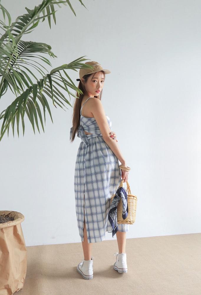 當然小心機的也不止有碎花,即使是穿著藍白麻病格的裙子,也挺性感的!