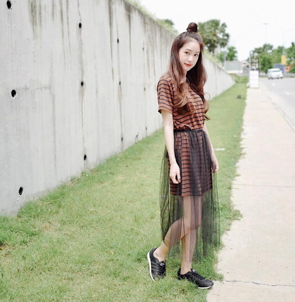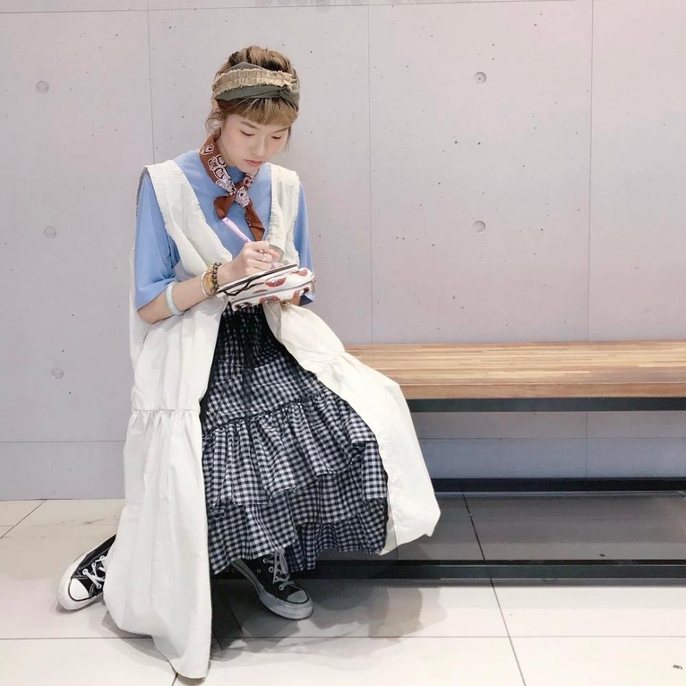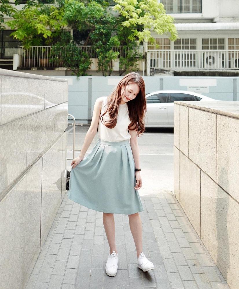 配上長裙,氣質又斯文的感覺就出來了~重點是白鞋子,非常好配啊!特別是在夏天~