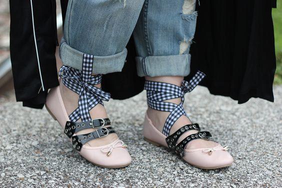 如果怕腳環難以駕馭,那不妨也穿上絲帶款的Ballet Laces,個人覺得襯牛仔褲是很好看的。大家又覺得呢?