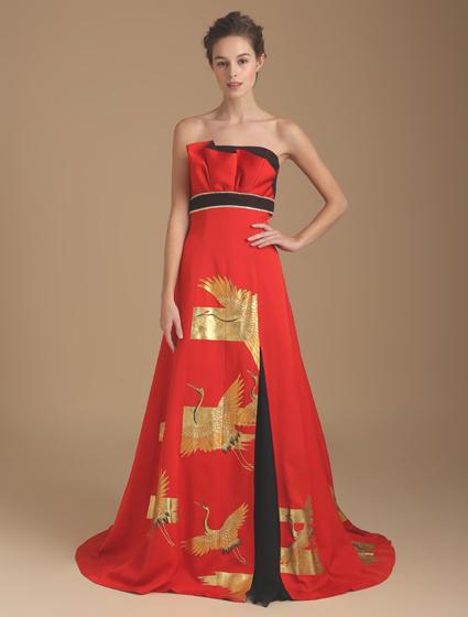 鶴椛:大紅色的禮物,可以滿足不少女生都穿紅色婚紗來敬酒,當中的鶴盲就像在天空中飛翔,還有楓葉和菊花,令禮服更有日本風情!