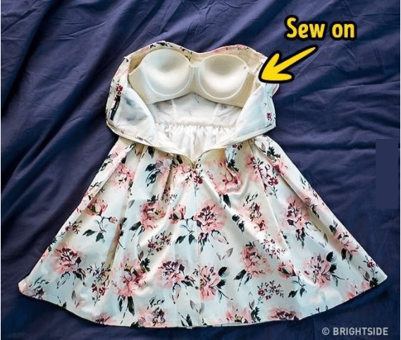有一些小洋裝雖然有內附罩杯,可是不一定合身和舒服啊!所以最好的方法是把半罩的內衣收進小洋裝內,可以令胸形堅挺飽滿!
