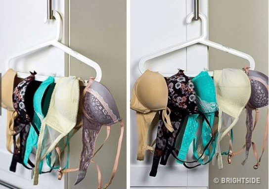 胸罩需要小心的收藏,不然變形了就功能就廢啦!不過家裹沒有大空間可以收納,只需要一個衣架就可以收納好胸罩!把全部胸罩都掛在衣掛上,不會讓你的胸罩變形,而且還很方便!