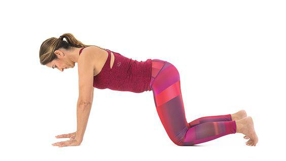 1. 雙膝跪在地上,雙手與肩膀同寬在地上支撐,望向地面,肩頸要放鬆!