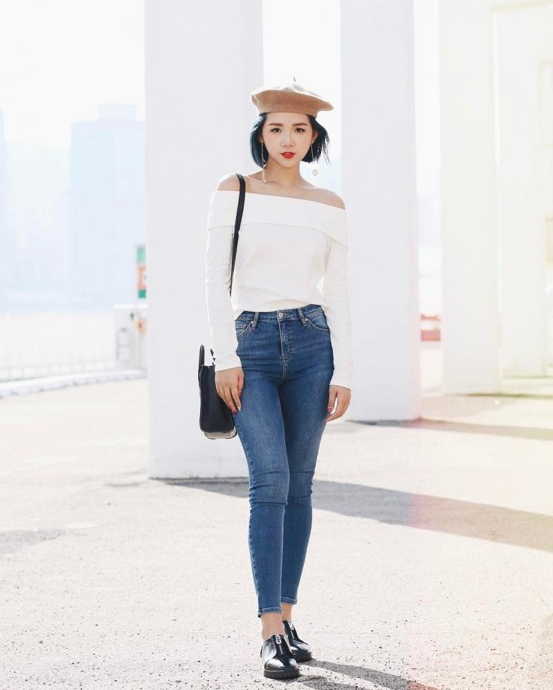 身高 160cm 以下的女生,盡量避免穿剪裁寬鬆的牛仔褲或是喇叭褲!不過想穿的話,只要配上高跟鞋或船跟鞋,褲腳也要剛好蓋過鞋面,才不會被拉矮哦!