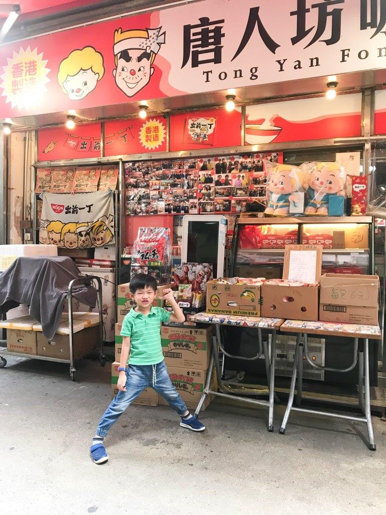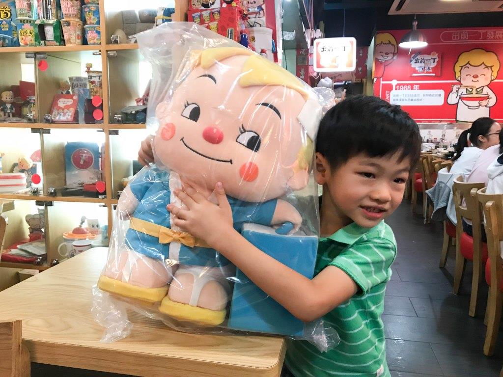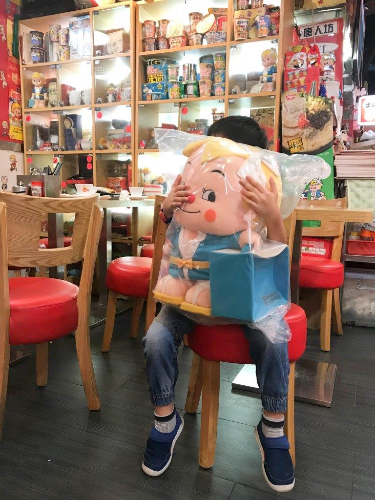老板看到我們帶小孩來,主動說借出這個清仔公仔讓楊小寶拍照!老板超nice的!